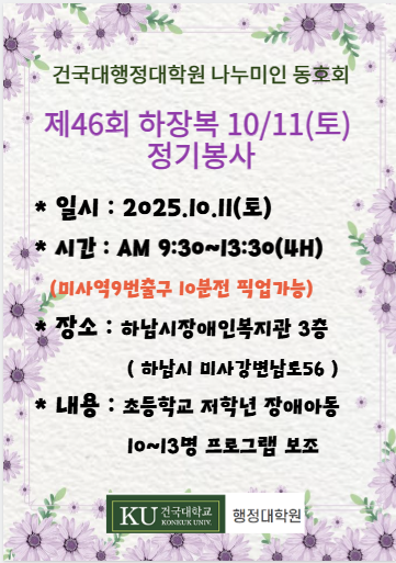 [나누미인] 10월 하남시 장애인복지관 봉사활동